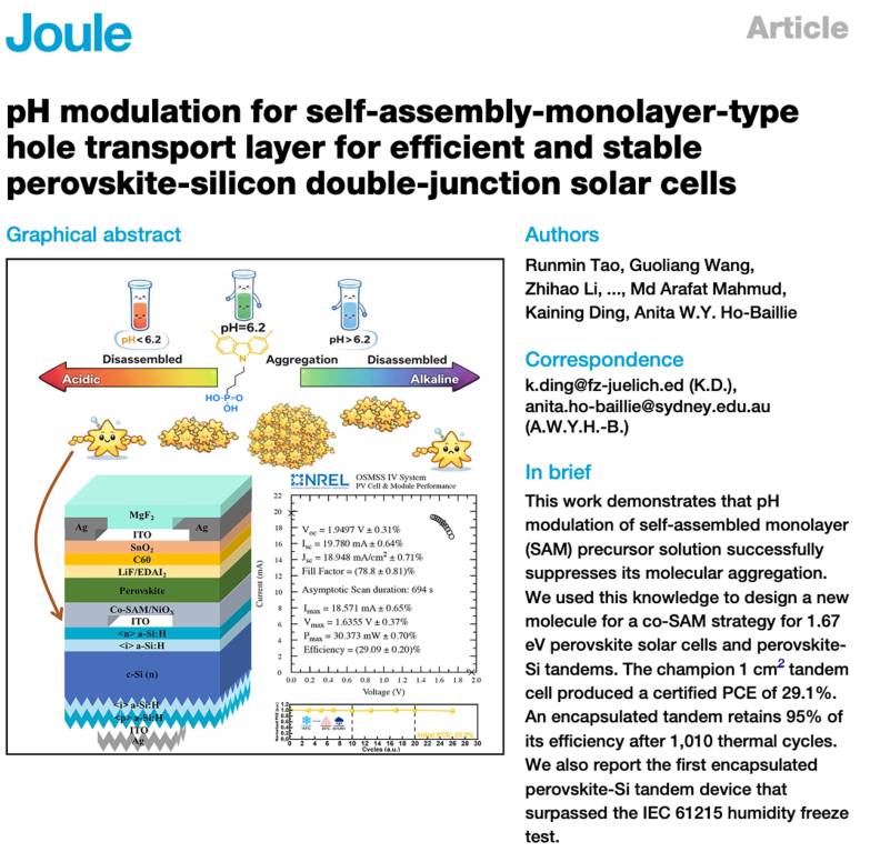 We are a dynamic research group based at the Sydney Nano Hub with laboratories for material synthesis, device fabrication and characterization, and solar cell and module testing at the University of Sydney. We are conducting research advancing solar technology, developing Multi-Junction Cells for Space, Photovoltaic Driven Clean Hydrogen Production and Building Integrated Photovoltaics. The group is also expanding its activities to optoelectronic devices such as photo-detectors, LEDs, sensors, and nano-lasers. Please see the Opportunities page for project details.